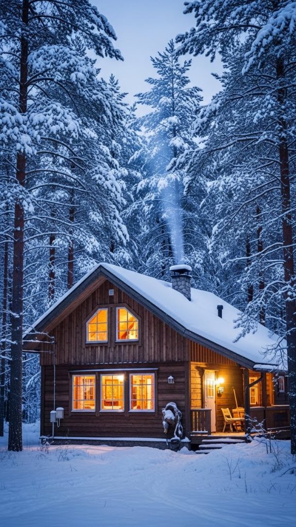 A snowy mountain cabin is the classic image of coziness. Thick blankets of snow, pine trees dusted in white, and the warmth of a wooden interior create a timeless winter retreat.