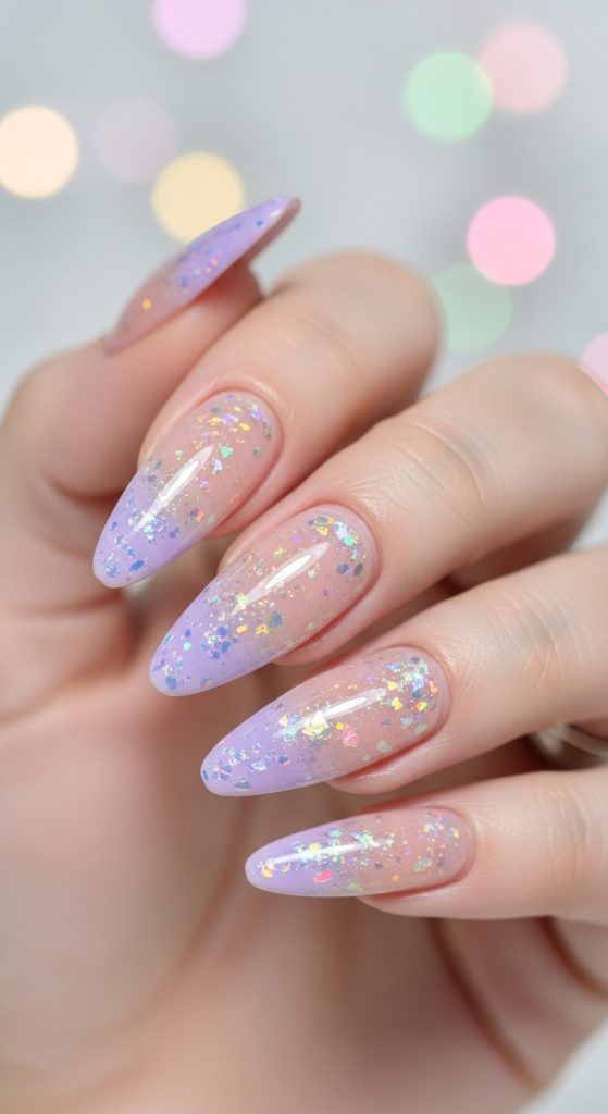 6. Moonlit Fairy Nails (Silver, Lavender & Iridescent Glow)