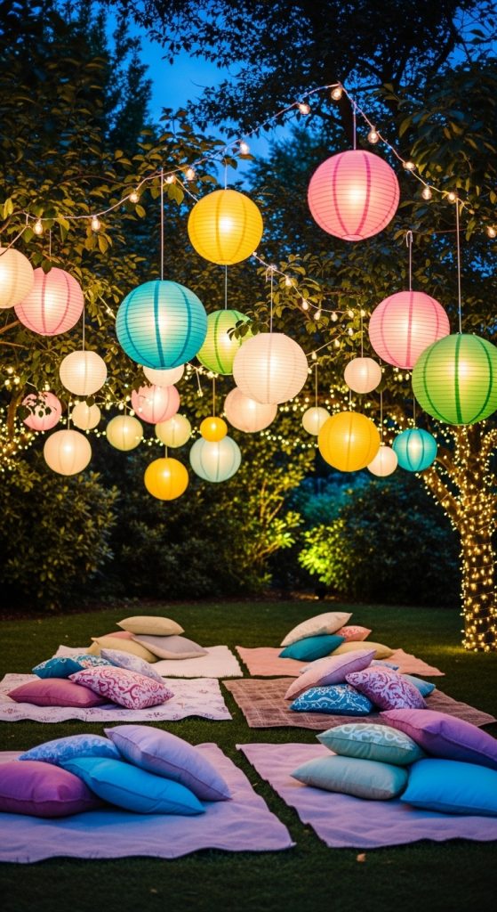 Choose lanterns in colors that match your theme, or mix pastel shades for a fun, festive atmosphere. For evening parties, opt for LED lanterns to ensure safety and a gentle glow.