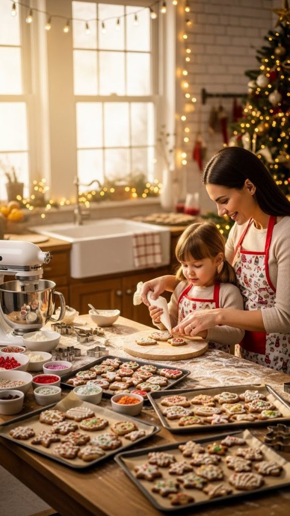 Have subjects engage in genuine activities such as rolling dough, sprinkling flour, cutting shapes, or decorating cookies. These actions create natural expressions, soft smiles, and interactive frames that feel authentic. Close-ups of hands dusted with flour, cookies arranged on trays, and family members reaching across each other add documentary-style charm.