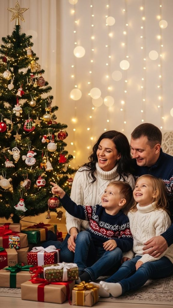 Capturing close-up shots with shallow depth of field makes the tree lights appear soft and dreamy. Positioning the subject slightly off-center creates balance without overshadowing the details of the tree. Families can sit on the floor surrounded by wrapped gifts, creating a scene that feels authentic and relaxed. Children can be photographed placing ornaments or reaching for the star at the top, capturing candid moments that express wonder and joy.