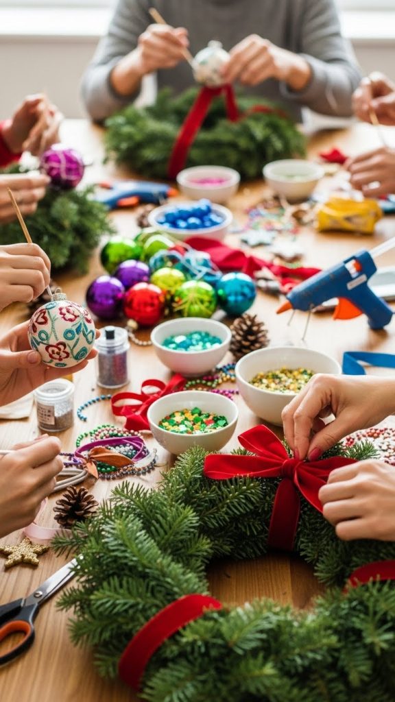 Crafting sessions offer a visually interesting and activity-based indoor Christmas photoshoot. Subjects can decorate ornaments, create handmade wreaths, paint wooden holiday figures, or design personalized cards. The table becomes a canvas filled with supplies such as paintbrushes, ribbons, pinecones, glitter, and cardstock.