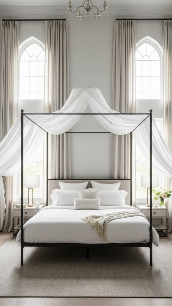 This bed style makes a strong design statement and works well in master bedrooms intended to feel luxurious and distinctive.