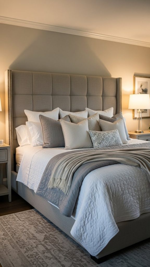 Color choices play a major role in the overall effect. Neutral tones like beige, cream, gray, and taupe create a calming atmosphere, while deeper shades such as navy, emerald, or charcoal add drama and sophistication. Tufted headboards introduce a classic, elegant look, while clean-lined upholstery suits modern interiors.