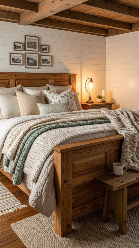 A rustic or farmhouse king size bed brings character, warmth, and a sense of history into the bedroom. This style emphasizes natural materials, texture, and craftsmanship.