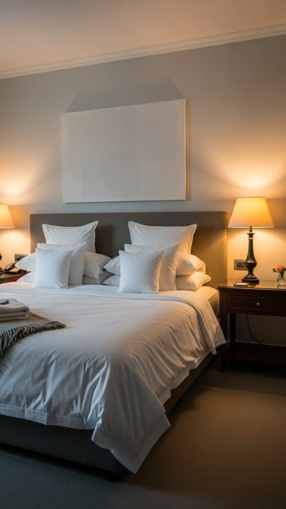 This style is ideal for those who want their bedroom to feel like a retreat. Soft lighting, blackout curtains, and minimal clutter complete the hotel-inspired experience, making sleep feel indulgent every night.