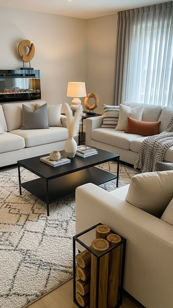 This approach creates a living room that feels cozy, balanced, and welcoming while still maintaining modern simplicity.