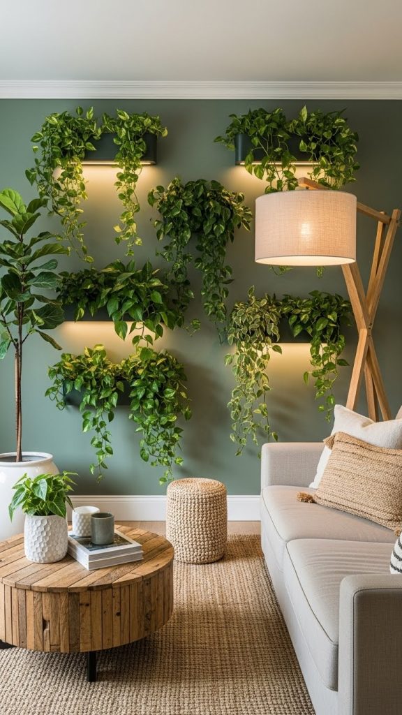 Nature-inspired design is increasingly popular, and living room walls can come alive with greenery. Green walls soften interiors and bring organic calm into modern homes.