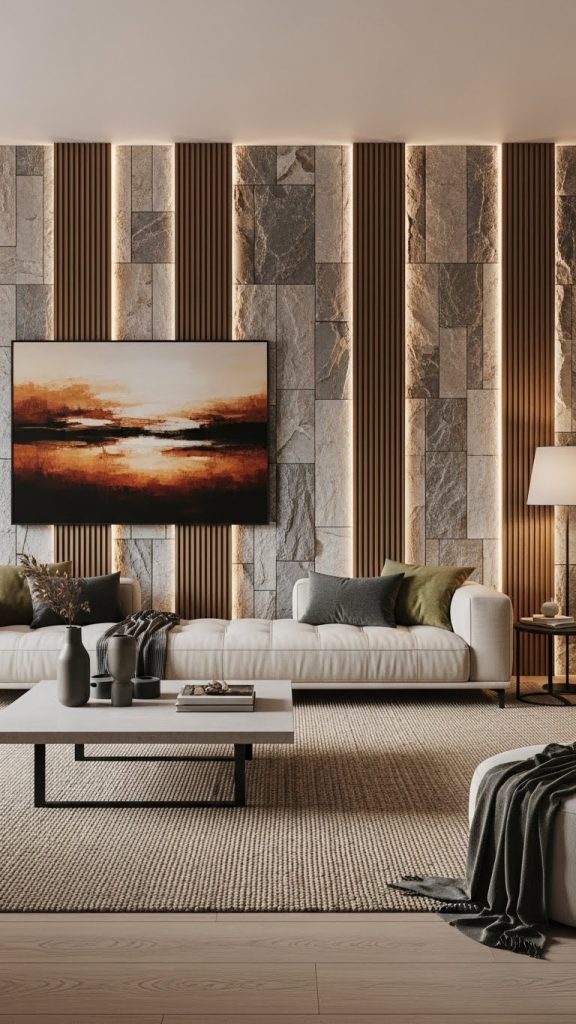 3. Feature Walls with Texture and Architectural Elements