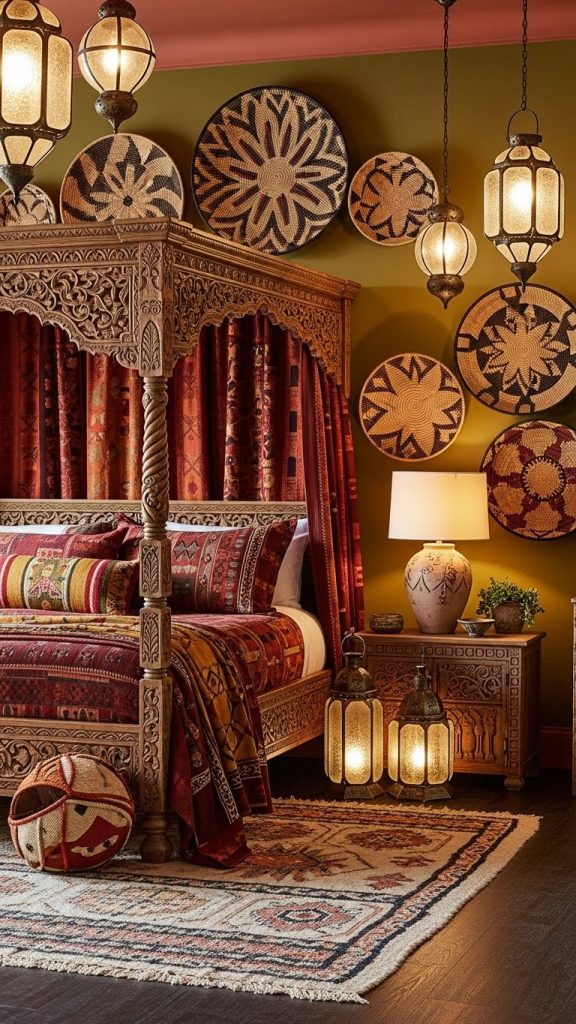 Global luxury draws inspiration from travel, culture, and artisan craftsmanship. Whether inspired by Moroccan riads, Japanese ryokans, Mediterranean villas, or African lodges, this design style uses rich textures, unique patterns, and curated decor. Carved wooden furniture, woven textiles, handcrafted ceramics, and embroidered bedding add depth and cultural richness.