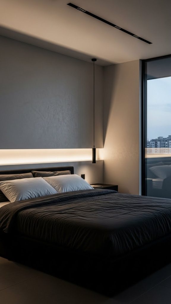 This style works well in modern or contemporary bedrooms where architectural lighting becomes the main design feature.
