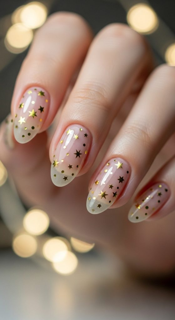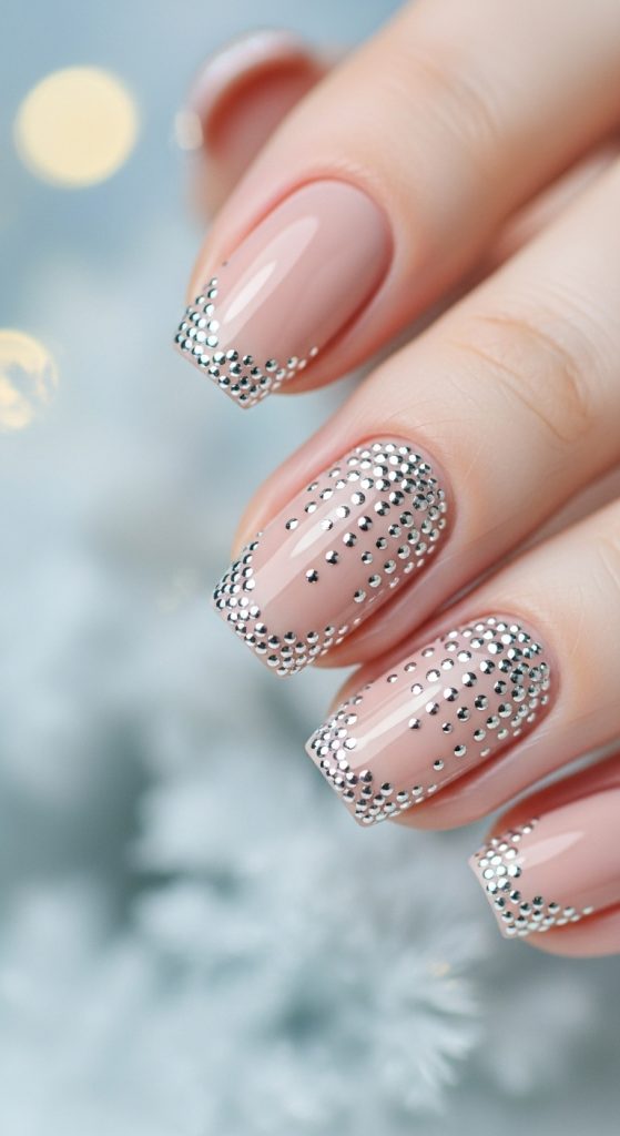 If you love simplicity, soft nude nails with a hint of glitter are the perfect Christmas choice. Nude manicures are classy and versatile, and adding a fine glitter top coat transforms them into a festive holiday look.