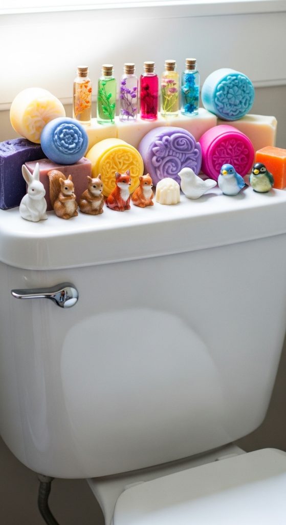Bathrooms deserve a sense of the unexpected and delightful. For those with collectibles—whether tiny animals, decorative soaps, or vintage perfume bottles—the toilet tank offers a curated stage.