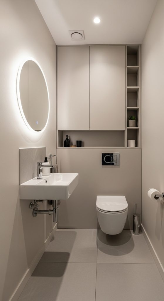 - Choose warm, ambient lighting to keep the bathroom feeling cozy and welcoming.