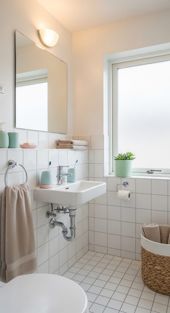 Color plays a significant role in how a bathroom feels. In smaller spaces, light and neutral tones create a sense of openness and calm. Soft hues like white, beige, light gray, and pastels help make the space feel larger and more inviting, while also enhancing natural light.