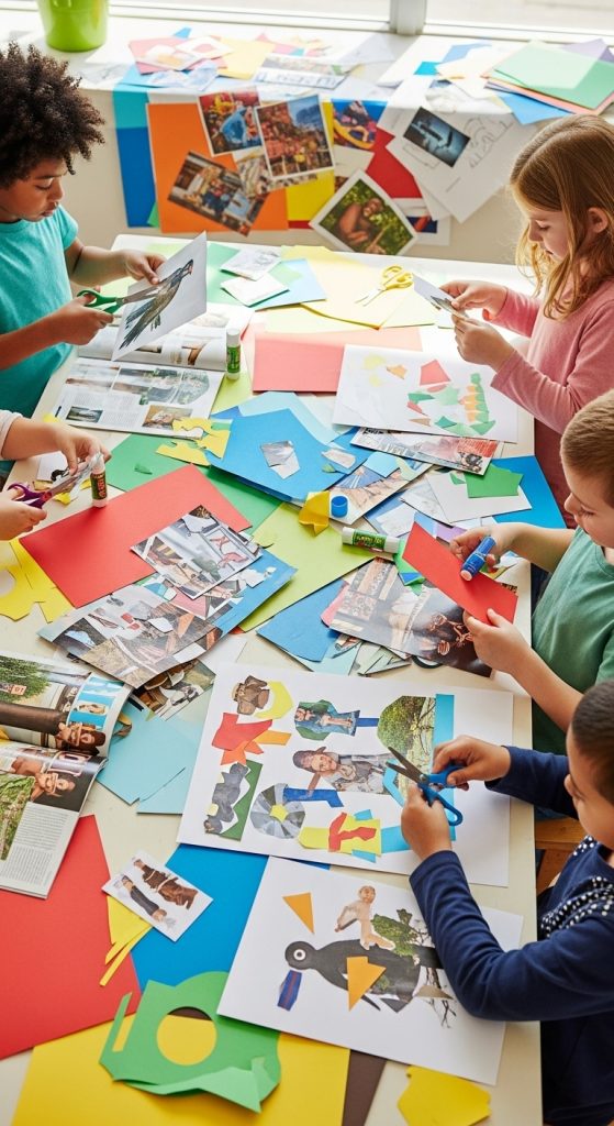 Collage making is a creative free-for-all โ€” kids can glue, cut, and layer paper to design anything they imagine.