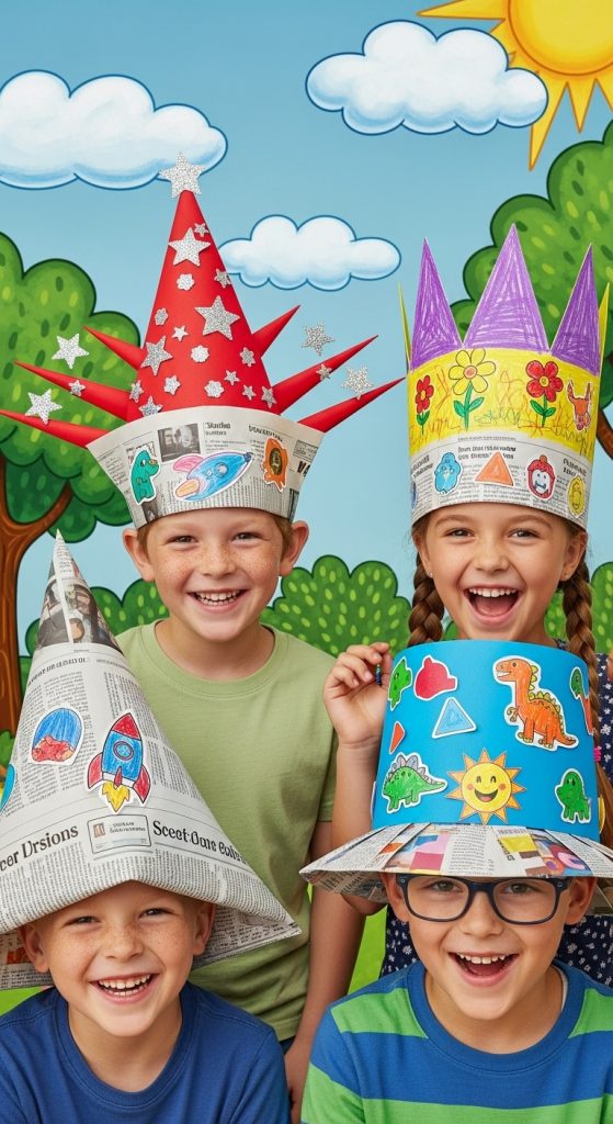 Kids can make pirate hats, crowns, or silly party hats to wear during playtime.