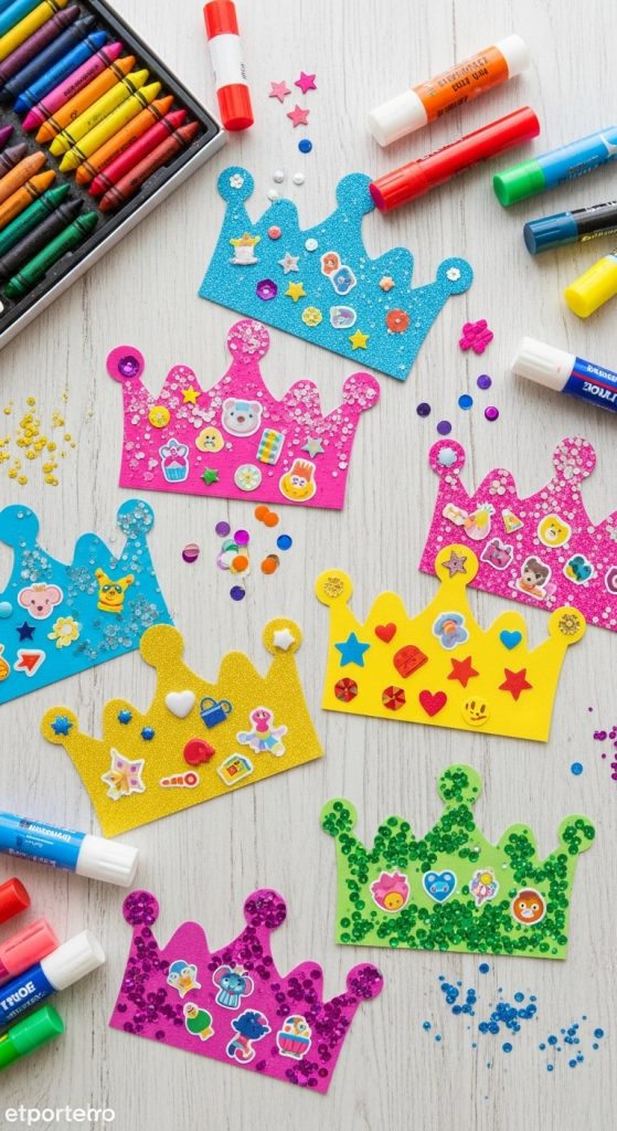Every child loves to feel like royalty, and crafting a paper crown makes it possible. Using cardstock or construction paper, kids can cut out a crown shape and decorate it with stickers, glitter, sequins, or gems. Some crowns can be themed, like a “nature crown” with leaves and flowers, or a “superhero crown” with bold colors and lightning bolts. This craft encourages imaginative play after the crown is made.