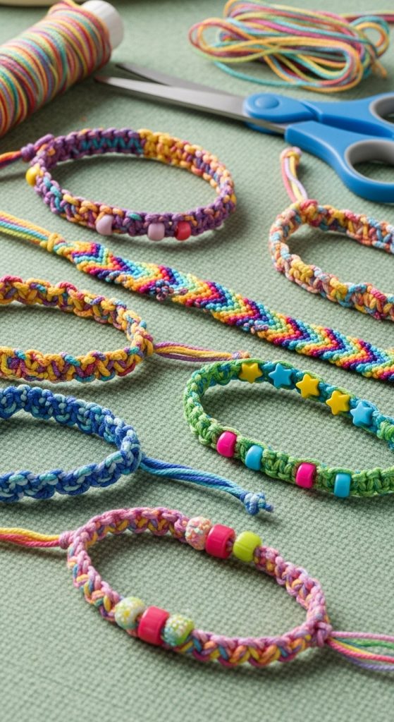 Friendship bracelets are not only fun to make but also encourage sharing and bonding. With embroidery floss, yarn, or beads, kids can braid or knot bracelets in different colors. This activity improves fine motor skills and allows kids to create handmade gifts for friends or siblings. The simplicity of this craft makes it easy for children to learn patterns and color coordination.