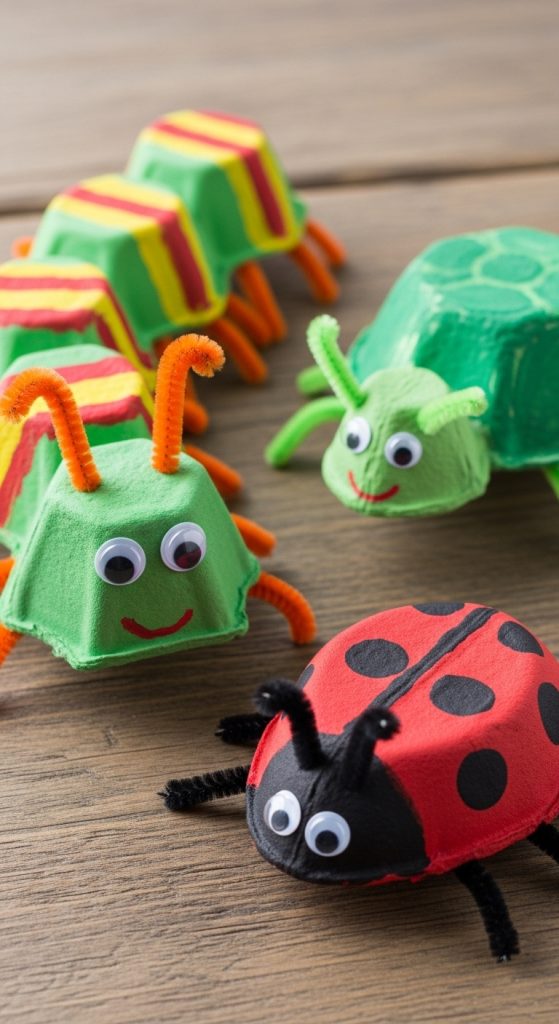 Instead of throwing away egg cartons, turn them into a fun craft project. Each cup of the carton can become a bug, turtle, caterpillar, or tiny monster. Kids can paint them, glue on pipe cleaners for legs or antennae, and add googly eyes for personality. This activity teaches recycling and sustainability while sparking creativity.