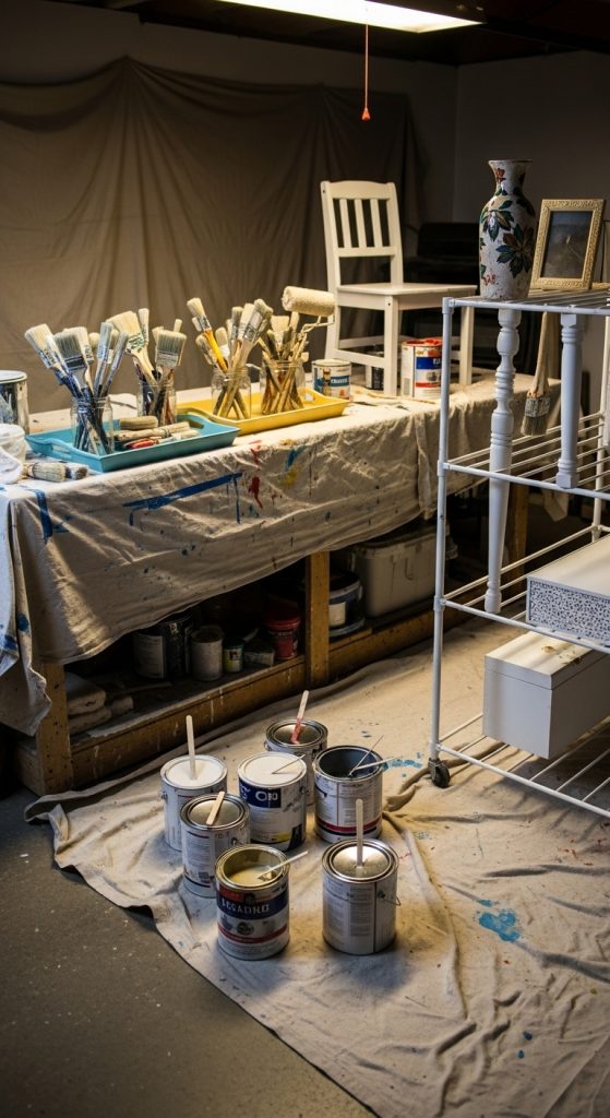 Creating a dedicated paint and staining area allows you to complete art or furniture projects efficiently. Proper setup ensures your garage stays organized while handling paints, stains, and finishes safely.