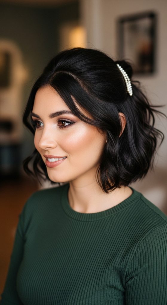 Even with short hair, you can enjoy the versatility of a half-up hairstyle.