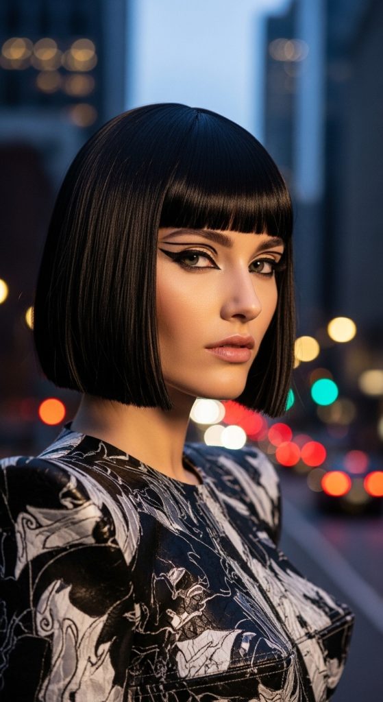 Edgy and fashion-forward, a blunt cut paired with bangs creates a dramatic statement.