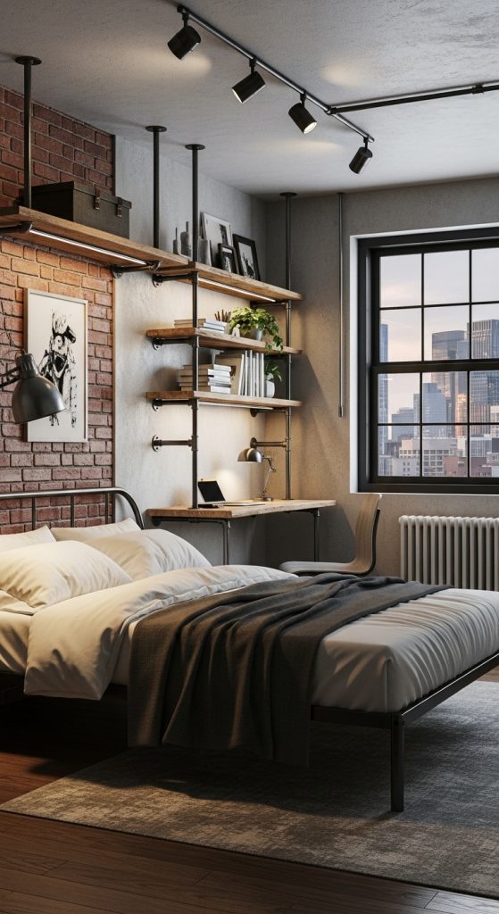 If you’re looking for a more urban, edgy vibe, industrial pipe shelves are a great way to add character and functionality to your walls. These shelves combine metal pipes and wooden planks, offering a rustic yet modern aesthetic.
